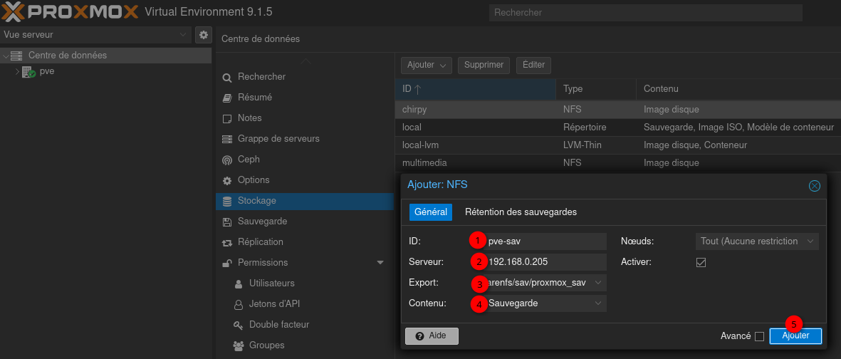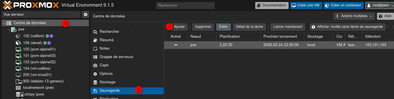 Création de la sauvegarde des VM Proxmox
