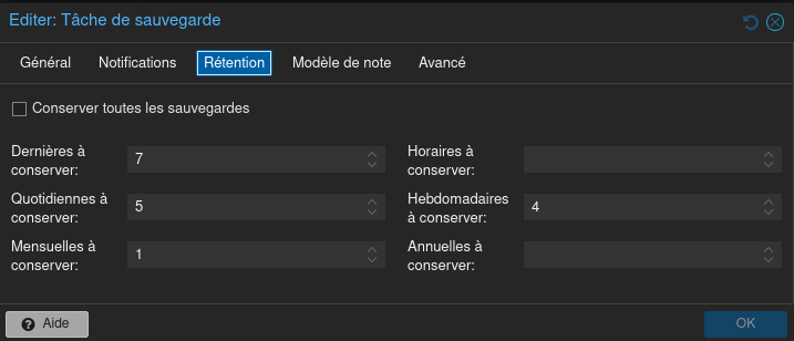 Et voilà votre job de sauvegardes configuré. Maintenant, chaque jour à 00h20 les machines virtuelles et conteneurs, en résumé l’intégralité du système va être sauvegardé.