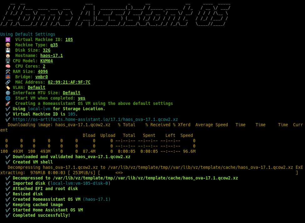 Proxmox: HA OS Script terminé