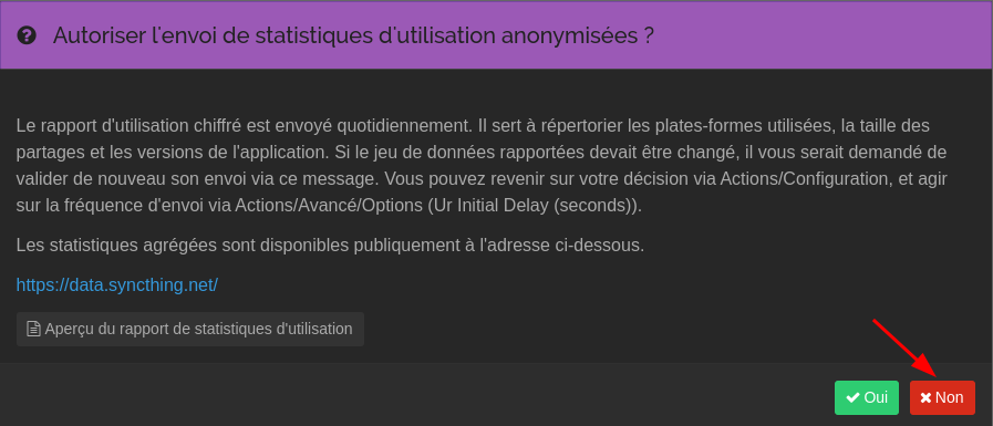Syncthing est une plateforme de partage de fichiers auto-hébergée, de sorte qu’aucune de vos données n’est jamais stockée ailleurs que sur vos ordinateurs. Il n’y a pas de serveur central qui pourrait être compromis, légalement ou illégalement. Toutes les communications sont sécurisées à l’aide de TLS. Le cryptage utilisé comprend un secret parfait pour empêcher tout espion d’accéder à vos données. Chaque nœud est identifié par un certificat cryptographique solide. Seuls les nœuds que vous avez explicitement autorisés peuvent se connecter à votre cluster.