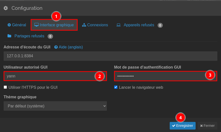 Le service est en écoute sur le port 8384 en local