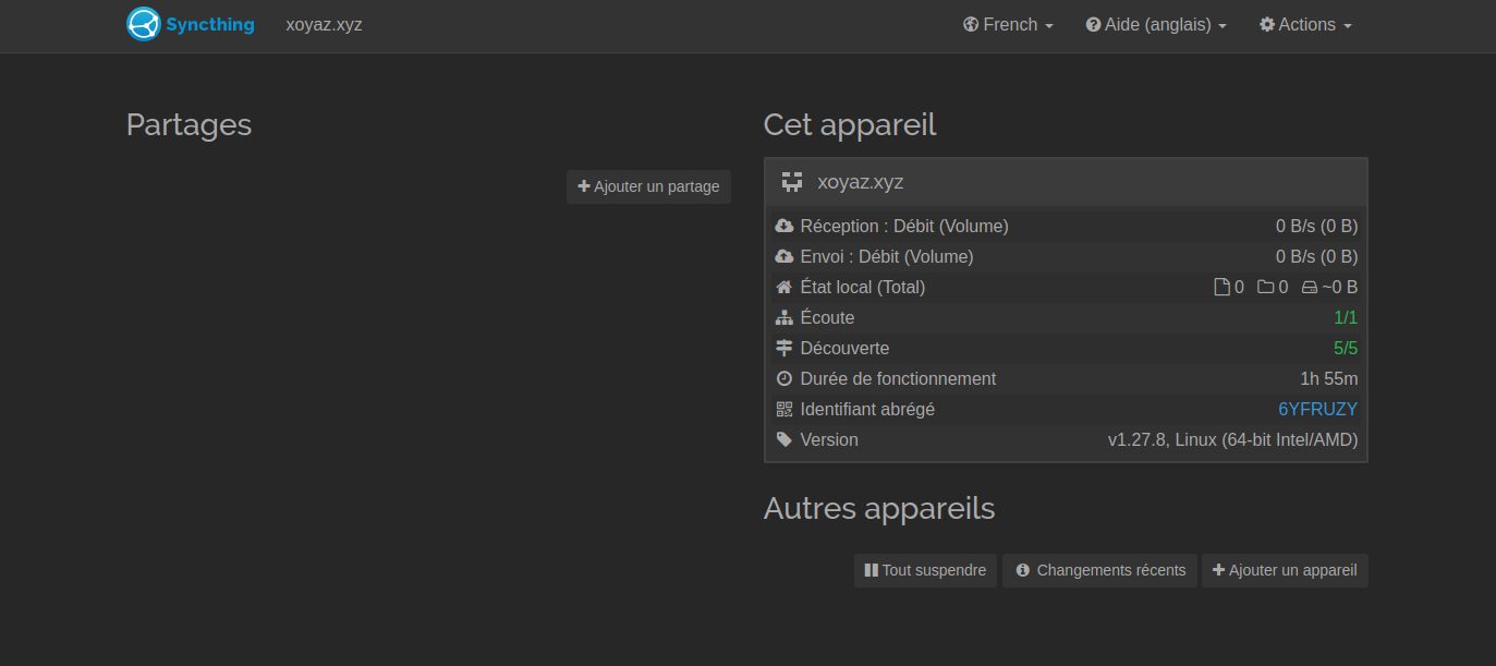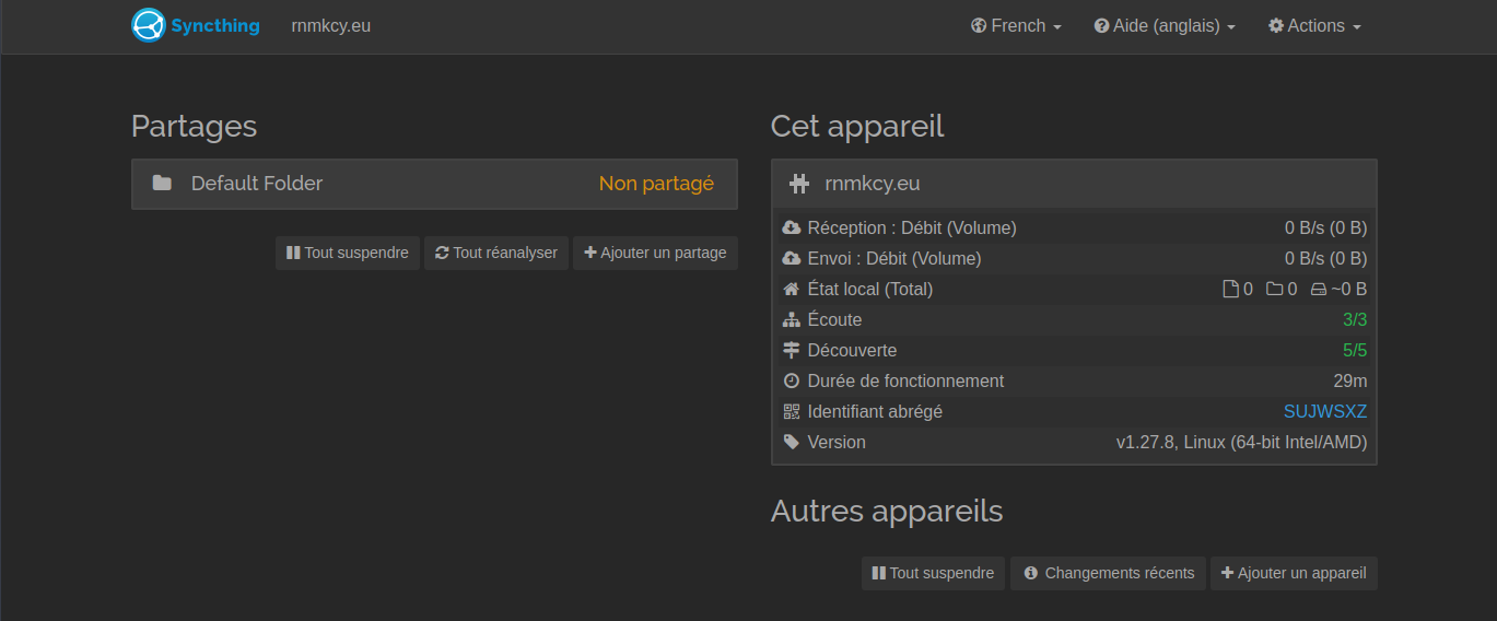 Une fois que nous avons deux appareils utilisant Syncthing, nous pouvons commencer à synchroniser les fichiers entre eux.
