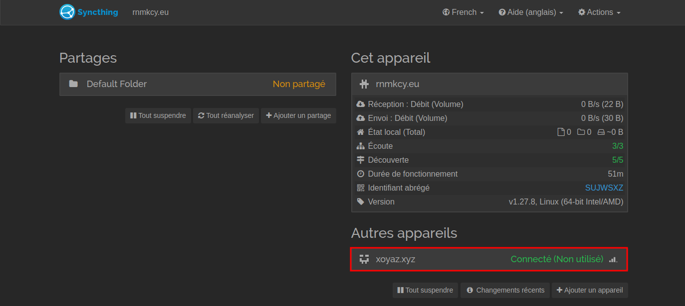 Dans l’onglet Partage, sélectionnez votre autre périphérique Syncthing.