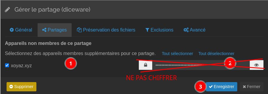 Dans l’onglet Partage, sélectionnez votre autre périphérique Syncthing.