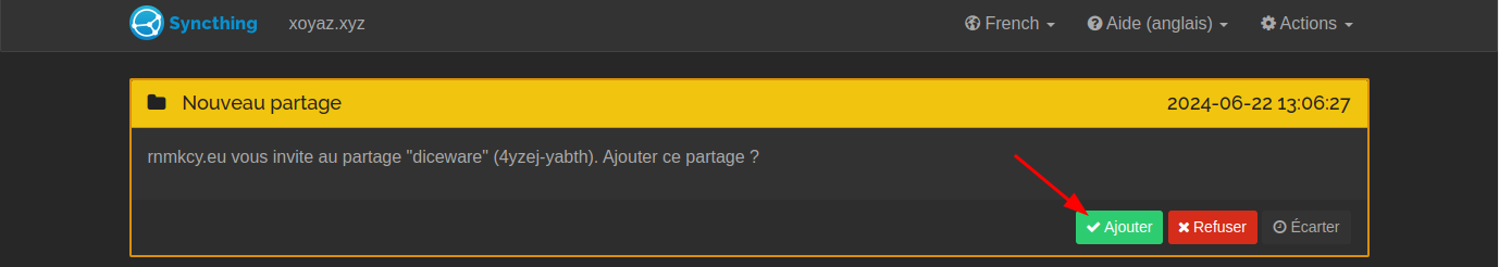 Procédez de même sur vos autres machines ou attendez de recevoir et acceptez l’invitation au partage de la première machine configurée sur les autres.