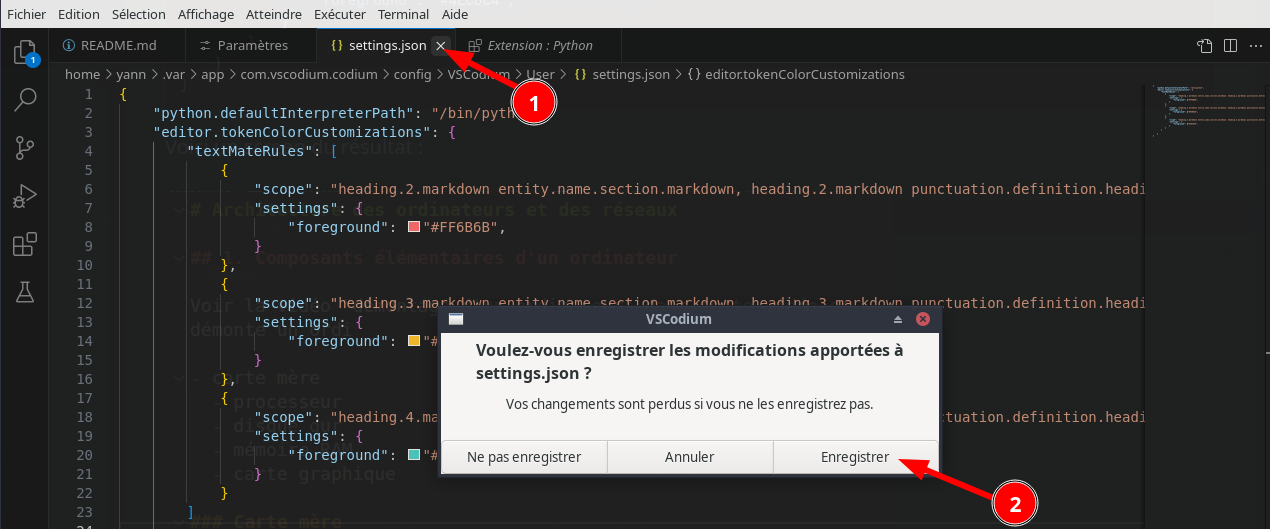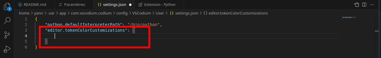 Clic sur “Modifier dans settings.json”