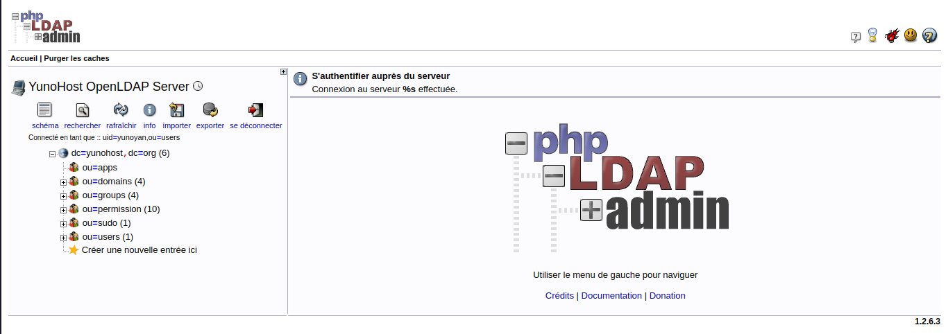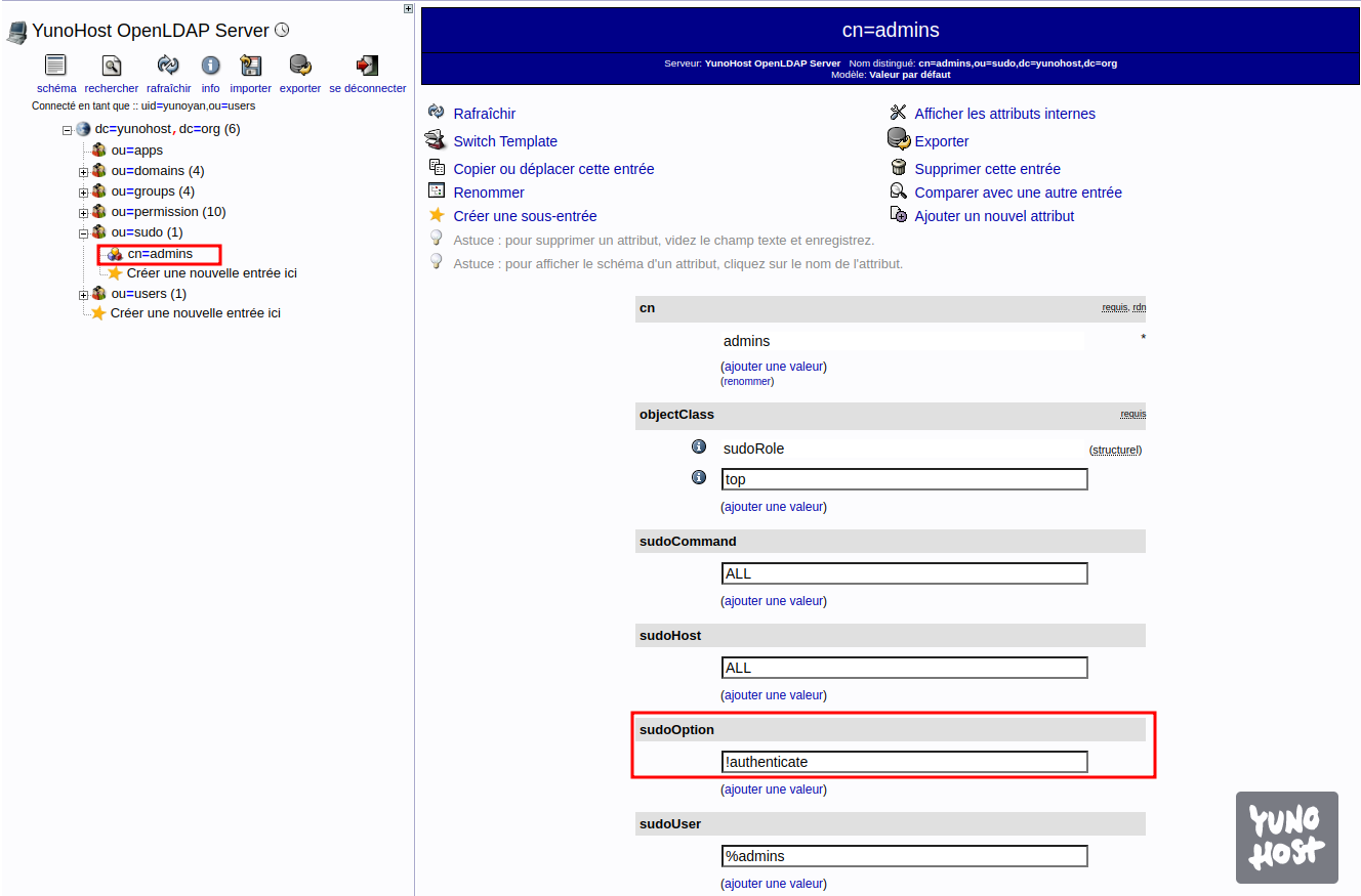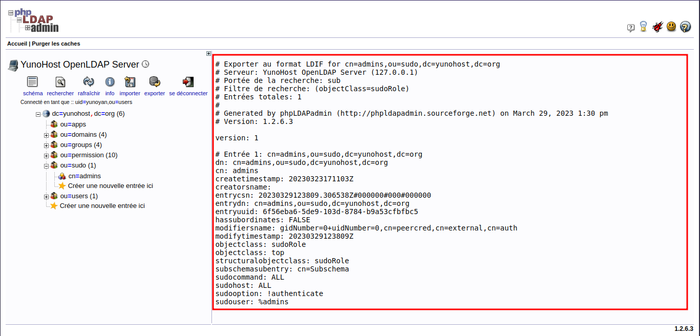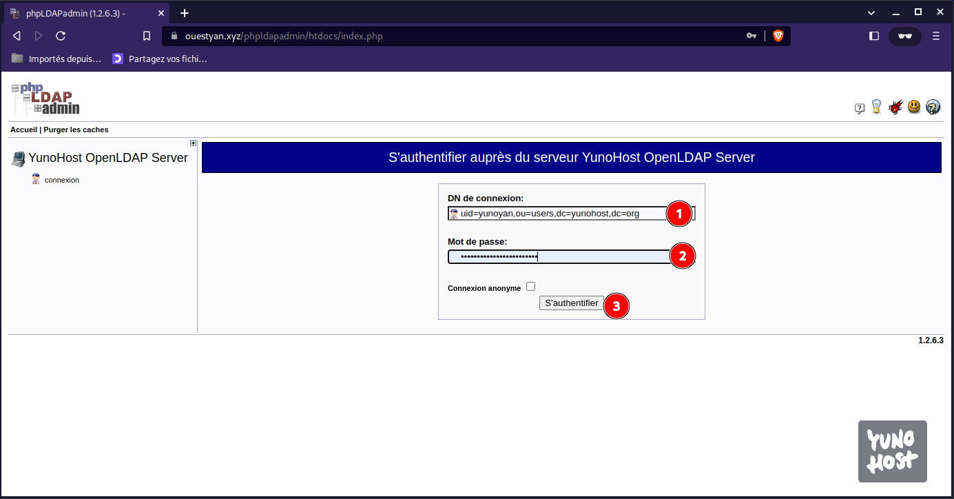 DN de conexion : uid=yunoyan,ou=users,dc=yunohost,dc=org