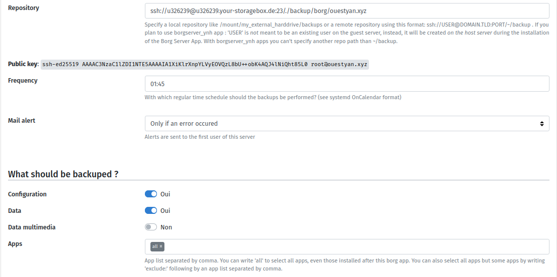 Yunohost BorgBackup restauration - Migration serveur