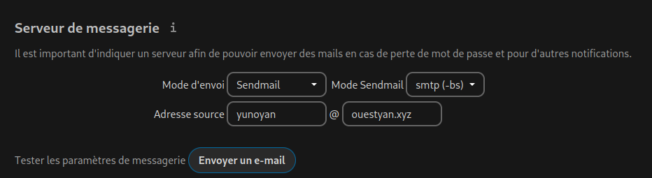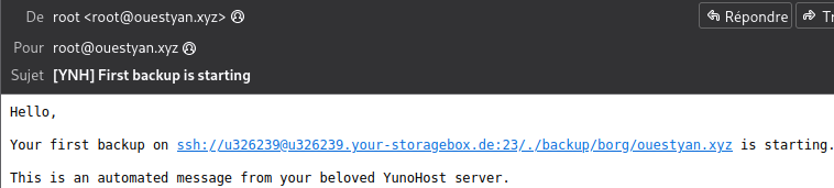 echo "Test notification par messagerie" | mail -s "Yunohost ouestyan.xyz" vpn@cinay.eu
