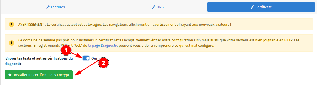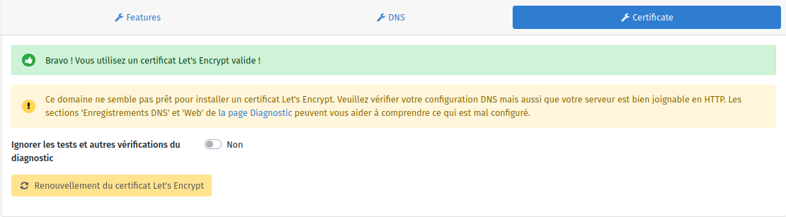- diagnostiquer les potentiels problèmes dans la section 'Diagnostic' de l'interface web (ou 'yunohost diagnosis run' en ligne de commande) ;