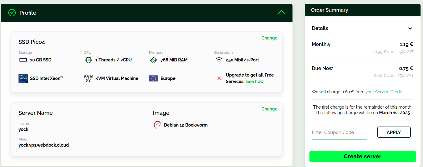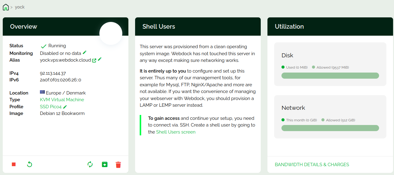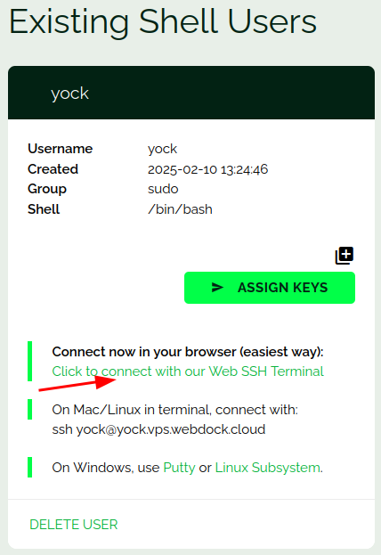 Se connecter sur un terminal web (https://webdock.io/en/dash/webssh/yock/yock)