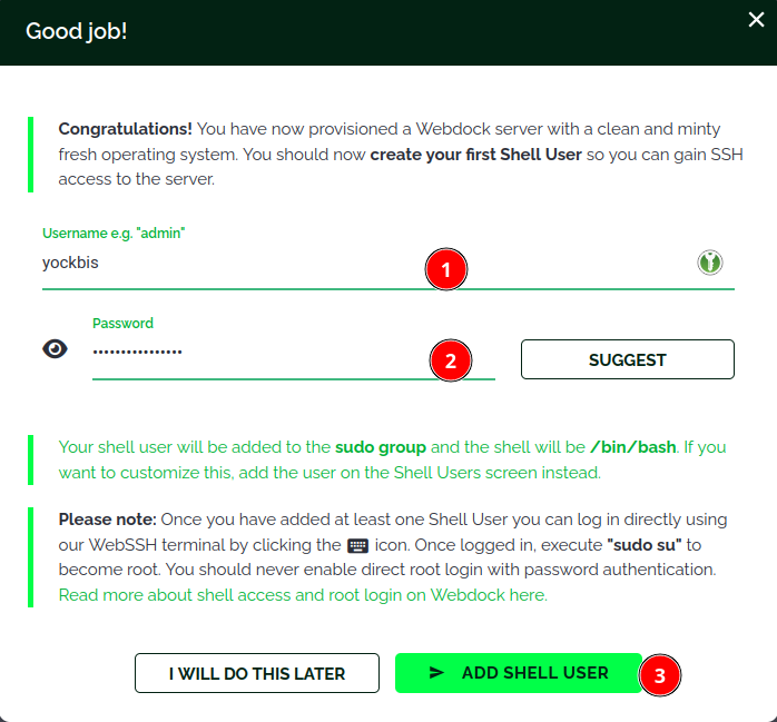 Créer un shell user avec l’utilisateur yockbis et son mot de passe